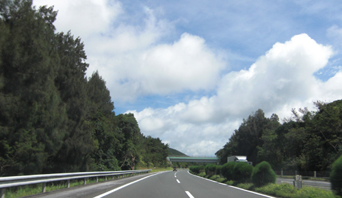 沖縄自動車道を北へ進みます、ホテルから水族館まで80kmくらい。