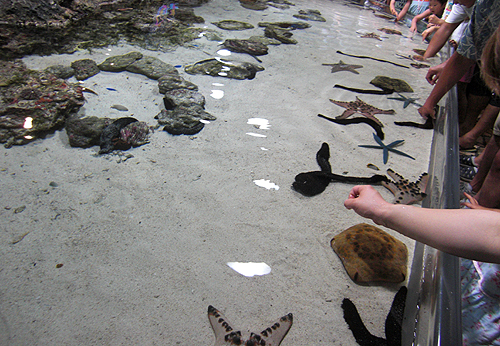 ヒトデに触れる水槽、水中で持ち上げるのも可。