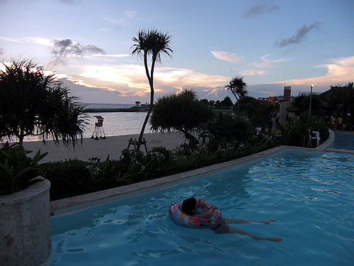 って訳でホテルに戻りプールへ、今日もちょっと雲が多くて海に沈む夕日は拝めず。