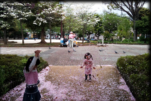 先日娘達と公園に行ったら八重桜が落ちて絨毯と化してました。