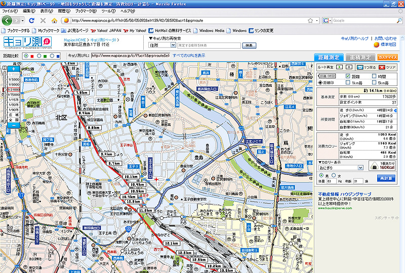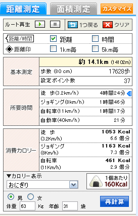 自宅から道の上をポチポチとクリックしていくと距離や時間やカロリーまでも算出してくれる面白いツールです。