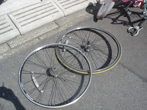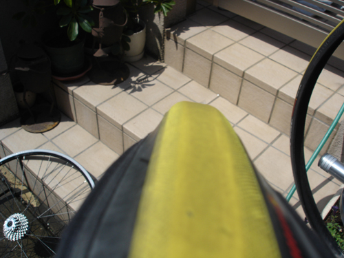 …つまりは前輪と後輪をホイールごとそのままそっくり交換しようとしてしまっていたのです、ついつい自動車的に考えてしまってた訳ですハイ、ロードバイクのタイヤローテーションってゴムタイヤだけひっぺがして前後交換してやるだけの事だったんですね。