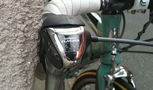 新しいワイヤーを通して完了、テンションの調整も特に必要なしで全てのギヤに入ってラッキーと思いきやギャリギャリとけっこうな異音も、要調整ですが時間無いのでまた後日。