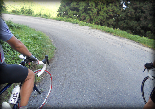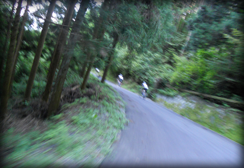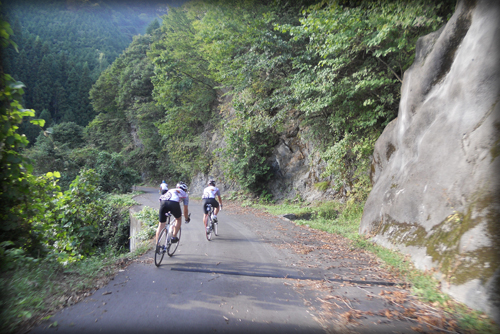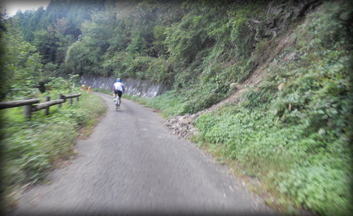 龍勢ヒルクライムのコースであると思われる場所を迷いながら登った愉快なおじさんたち4名、今度は当日の下山コースと思われる道を使って龍勢会館まで戻るよ!