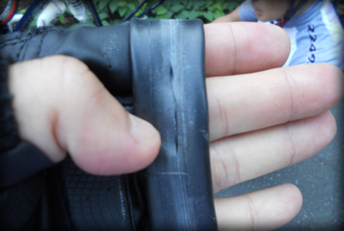 ブレーキの熱でリムテープとチューブがお亡くなりになりました。