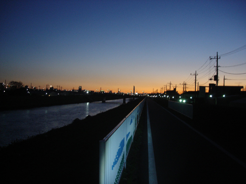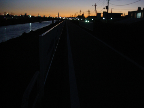 日が暮れても荒川にはかなりのランナーさんや無灯火の自転車も居たりしてよーく目をこらして見ないといきなり視界に人が現れます、ランナーさんはライトや反射材を身につけてる方は視認できるのですが中には靴のカカトにも反射材が無い真っ黒ジャージの方が目の前に現れビックリしました…