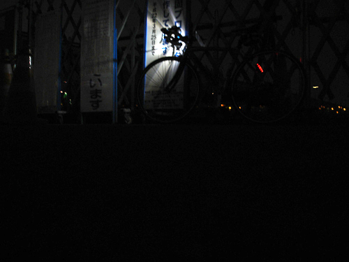 乗りながら進むもパンクしたら真っ暗の中で修理は困難だと気がつき降り押して歩く。