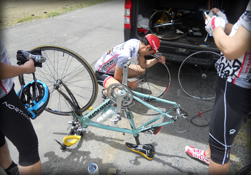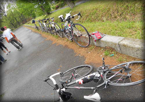 それにしても今日はウェア選びが難しい日、雨に濡れれば冷えるだろうし太陽がでれば暑くなるだろうし、自分は冬着を選択しましたが真夏のウェアの方も、とりあえず走ってるとちょっと暑くて失敗だったかなーと思う時もあれば日陰に入ると寒くて助かったと思う事も。