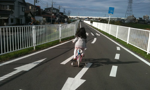 翌々日は長女と自転車のt練習、まだ補助輪だけど早く走れるようになってきた。