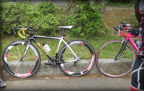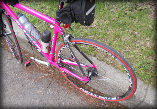 Qさんのロード、ピンクで派手ですね(*´∀`)