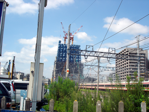 押上って昔から微妙に下町っぽい感じすら漂う低い建物の多い住宅街なのにどこにいきなりこんなデカイ物がドカーンと登場ですよ、建設現場に近い家の人は凄い圧迫感を感じそうな気がする。