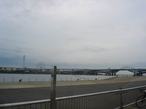 サクっと荒川河口の新砂ステーションへ到着、ここからだと海は見えるけどもうちょい先、でも道は無いのであの観覧車のある葛西臨海公園まで行ってみたいと思います。
