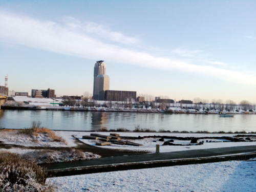 道路は一部凍ってるものの雪はそれほど道路には無く自転車通勤はギリギリ問題なし、一安心。