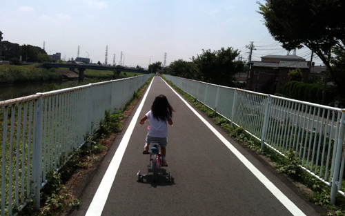 最近補助輪外しにトライしてきたがうまくいかないので補助輪をつけたまま走行距離を伸ばして脚力を付けてもらう方向にシフト。