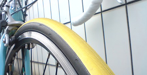 普通に走っていて白線やマンホールの上で滑る滑る、アスファルト上でのゼロスタートでさえ滑る!タイヤの形も改めてよく見ると結構山型なんですね、接地面が少ないような気がする、その割には重いし硬い。