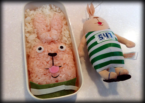 今日の弁当はキャラ弁、ウサビッチのプーチン。