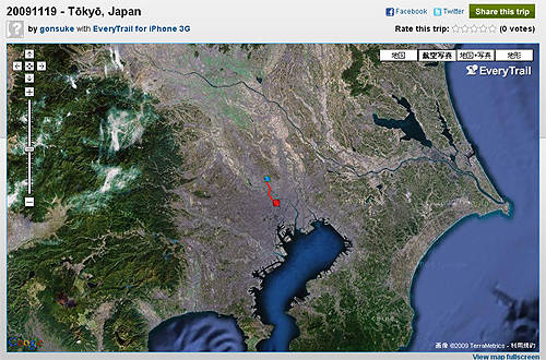 GPSログアプリのEverytrailを起動させて職場より帰宅の途中だけを記録に残し公開がうまくいくかテストしてみます。