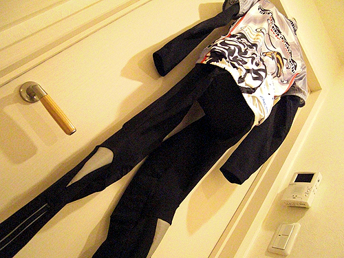 ジャージも靴もパンツもびしょ濡れだ、昼頃から腫れてきたので屋上に干せば1時間であっというまに乾いた。