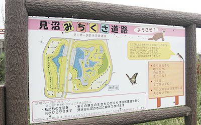 広い草むらにバッタやら鳥やら色々な生物が居るようで看板で解説されてました。