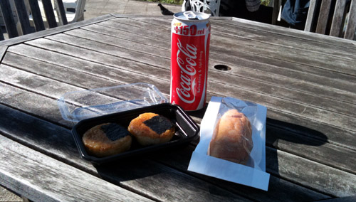 補給、いそべ焼き150円、あげパン100円、サイフに優しい価格です。